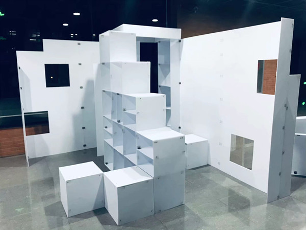 本次实体搭建大赛历时30天,总计100余名学生组成的16支队伍参赛。比赛分为建模指导、草模评选、实体搭建、可行性实验四个部分。经过一审与二审阶段,确定六支队伍完成最终搭建。本次搭建要求使用统一材料pp中空板,底面积不得超过8平方米,高度不得超过1.8米,并可容纳多名成人站立。