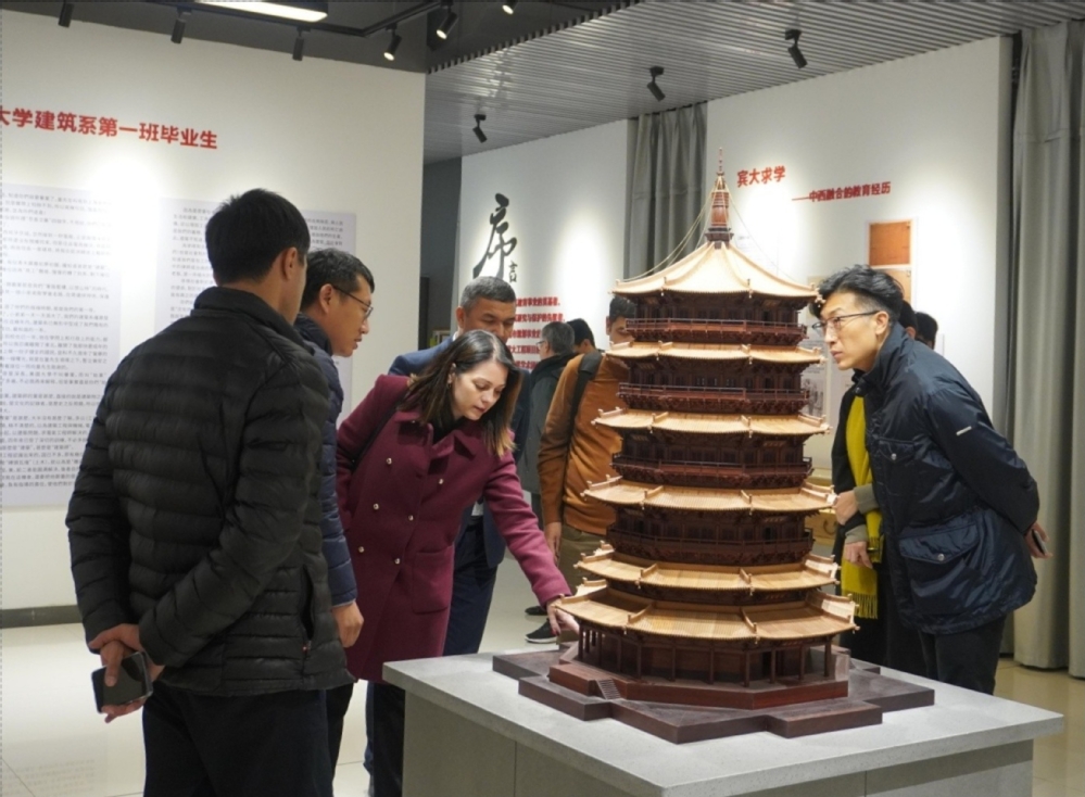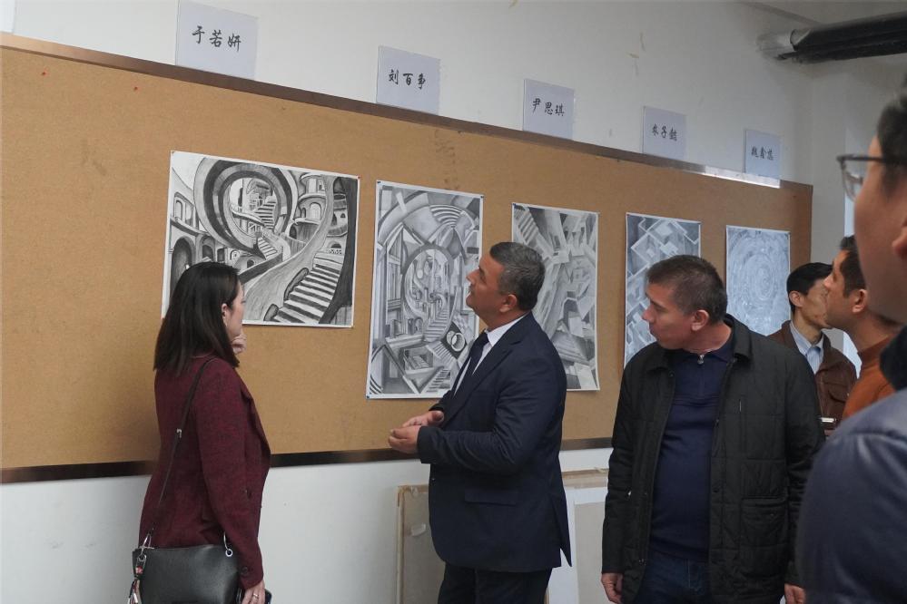 Chidem Janbay Turkyılmaz校长一行参观了学院梁思成纪念馆、学生作业展、与香港中文大学共建国际暑期课课程成果展、学生美术作品展等,同时对学院专业教室、美术教室等基础教学设施进行了实地考察,并与建筑学院学子们进行亲切交流。