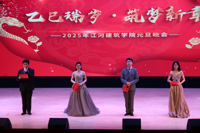 颁奖典礼后,“乙巳瑞岁·筑梦新章”元旦晚会正式拉开序幕。晚会分为“筑梦启航·乐动心弦”“筑韵华章·青春绽放”“筑构未来·梦想同行”三个篇章,包含歌曲、舞蹈、小品、乐器表演等十余个节目,并设置了抽奖互动环节。