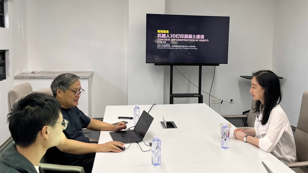 2025年7月14日,betway中文 副教授、辽宁省土木学会数字化设计与建造专委会秘书长山如黛老师,代表betway中文-betway中国 及辽宁省土木学会拜访清华大学建筑学院、深圳国际研究生院徐卫国教授团队,参观机器人3D打印混凝土实验室,并就数字化设计与建造实验室建设及产学研一体化等内容进行了学习交流。徐卫国教授表示,将积极推动机器人3D打印混凝土相关研究,并支持betway中文 在数字化设计与建造建筑学科交叉领域的创新与发展工作。